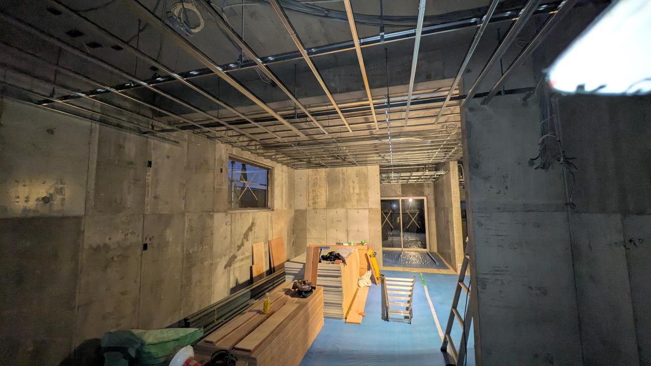 今帰仁の現場の天井下地組(軽天工事)の写真。