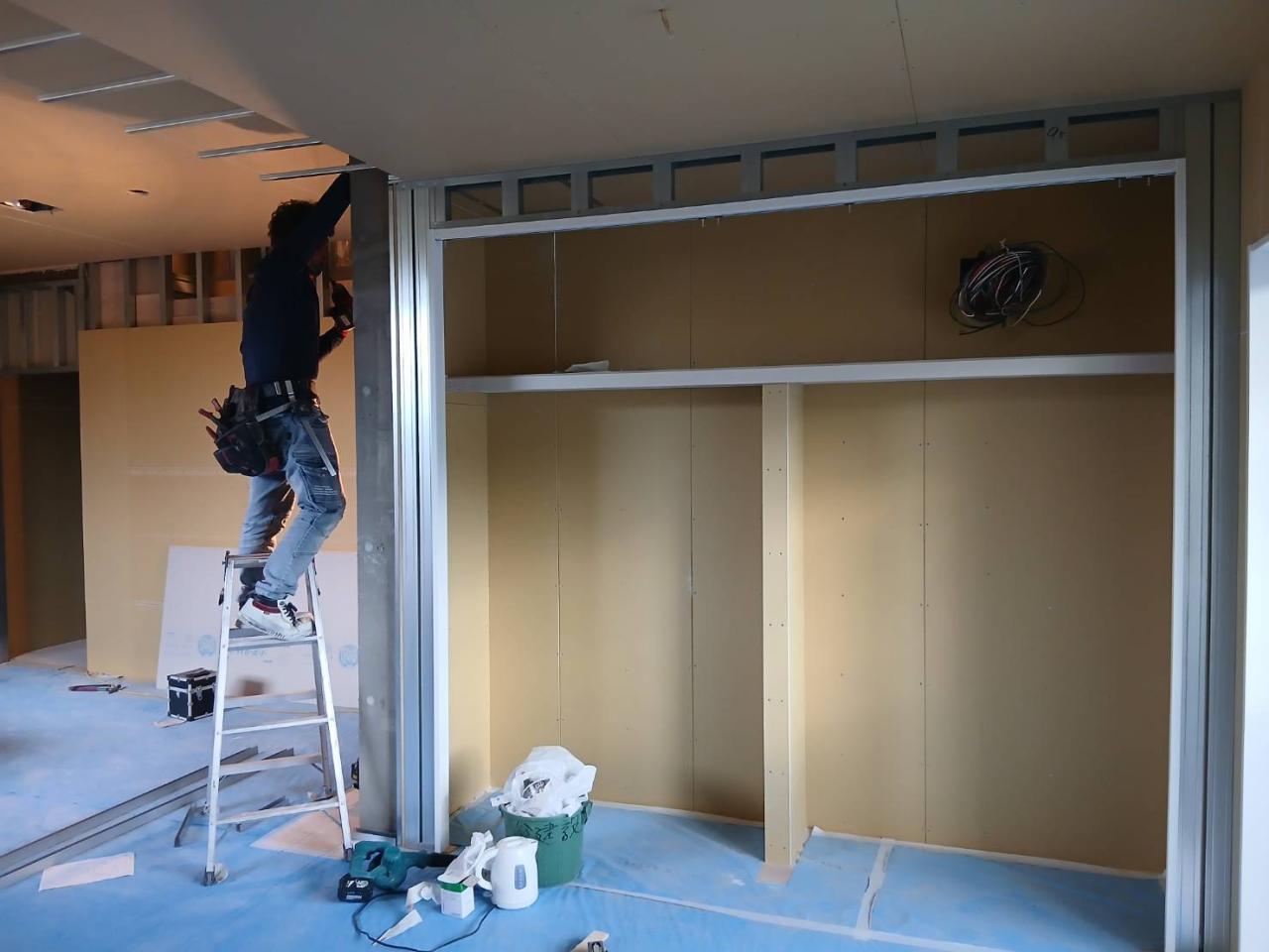 大工、軽天工事無事☆ 結構なボリュームでしたがとても楽しい現場で毎日が勉強でした。 23年ほどこの仕事してますが、常に難しい仕事が来るし、本当に自分のためになるさー 最近はクロス工事も力入れてるのでぜひご依頼お待ちしております 軽天、大工、クロス工事全て自社で責任をもって施行します☆